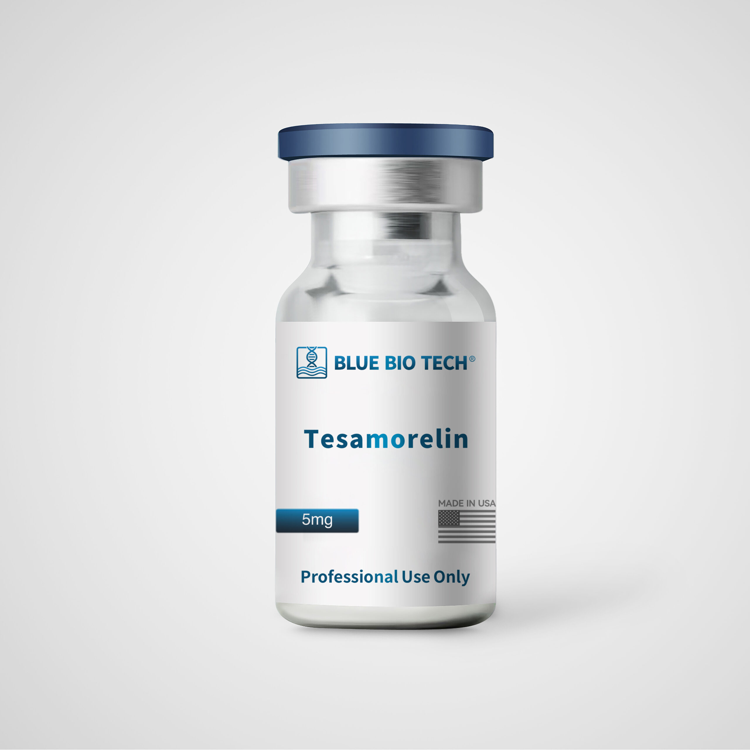 Tesamorelin is a synthetic analog of growth hormone-releasing hormone (GHRH), developed for research into visceral adipose reduction, GH axis modulation, and metabolic function—especially in the context of HIV-associated lipodystrophy. Supplied in 5mg RUO-grade lyophilized powder vials. Manufactured in the USA by BlueBiotech®. For Research Use Only – Not intended for human or veterinary use.